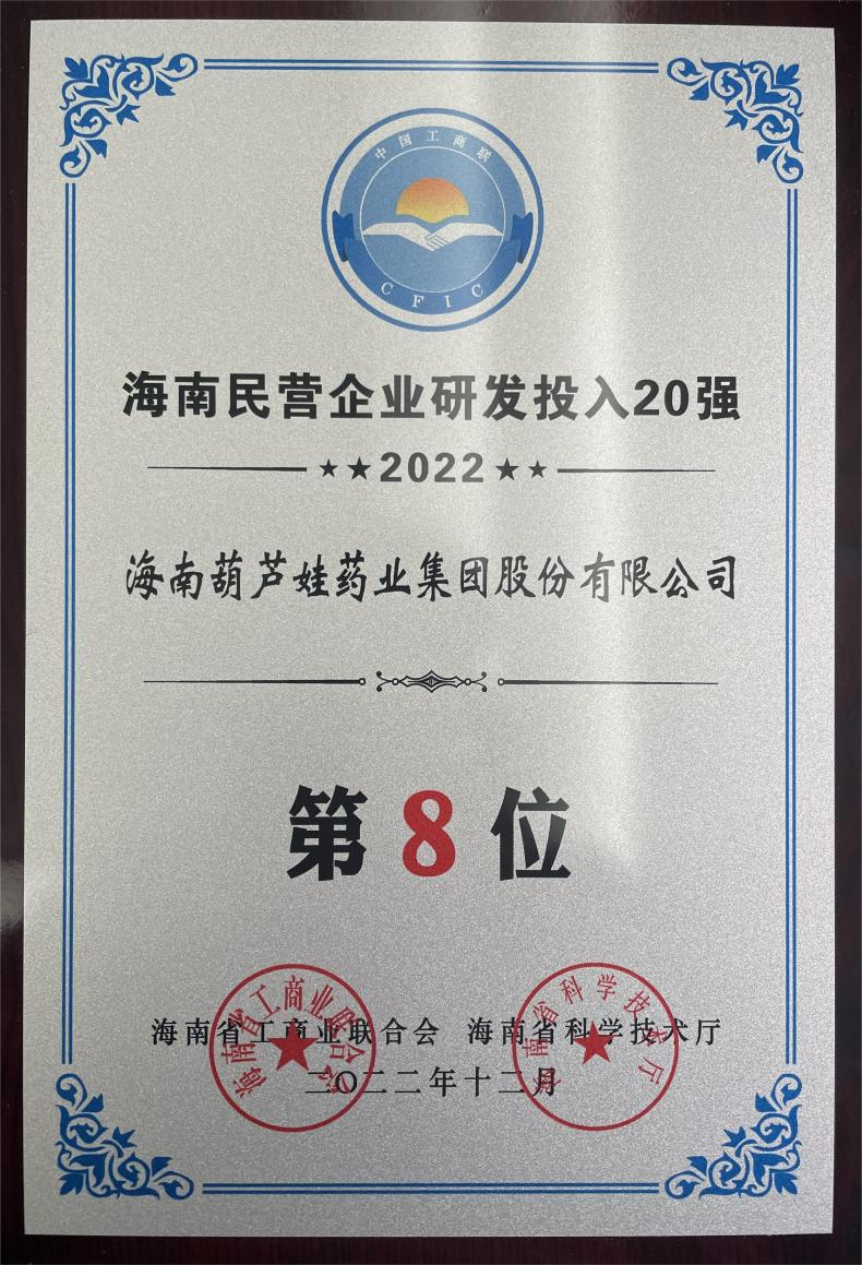 12月23日,2022海南民营企业50强和研发投入20强发布会在海口举行。会上发布了“2022海南民营企业50强”“2022海南民营企业研发投入20强”榜单和分析报告。Z6·尊龙时凯药业再次荣登两榜,在海南民营企业50强榜单中位列第25位,较去年上升8位,这也是公司连续三年登榜;在海南民营企业研发投入20强中位列第8位,较去年上升7位。